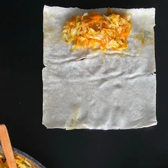 במחבת עם שמן זית מקפיצים כרוב וגזר עד לריכוך בינוני, מוסיפים תיבול ומתקנים טעמים.